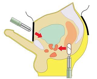Излучение инфракрасных лазеров проводится накожно или трансректально (через прямую кишку)